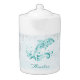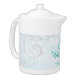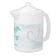 Enjoy your tea with a Teal Dolphin Personalized Teapot. Teapot design features a vibrant metallic dolphin against a muted seascape adorned elegant scrolls with an area to personalize with your name. Additional gift items available with this design as well as a variety of colors.