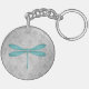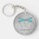 Teal Dragonfly Damask Keychain