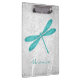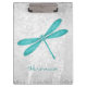 Jot down notes and reminders on a secure surface with a Teal Dragonfly Personalized Clipboard. Clipboard design features a colorful dragonfly, a soft white leafy vine against a light gray grunge damask background with an area to personalize with your name. Additional gift items available with this design as well as a variety of colors.