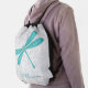 Carry your things with you while you're on the go with a unique Teal Dragonfly Personalized Drawstring Backpack. Backpack design features a colorful dragonfly, a soft white leafy vine against a light gray grunge damask background with an area to personalize with your name. Additional gift items available with this design as well as a variety of colors.
