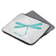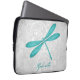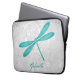 Protect your laptop while you're on the go with a Teal Dragonfly Personalized Laptop Sleeve. Sleeve design features a colorful dragonfly, a soft white floral vine against a light gray grunge damask background with an area to personalize with your name. Additional gift items available with this design as well as a variety of colors. Personalize for yourself or makes a great gift.