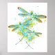 Teal Dragonfly splatter Poster