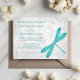 Plain white envelopes are included with paper invitations and will come to fit the invitation size you select. If you don’t need the envelopes, you may choose to not receive them by selecting the dropdown below "Envelopes" and choosing "None." If you’d like to have a design on your envelopes, you can browse all of these available envelopes to find the design that complements your Teal Dragonfly Wedding Invitation.