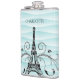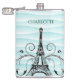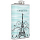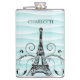 Enjoy your favorite alcoholic beverages anywhere with a Teal Eiffel Tower Flourish Flask. Flask design features the Eiffel Tower adorned with elegant flourishes against a teal wavy background. Additional colors available with this design as well. This item may be personalized with a name, monogram, or favorite saying of your choosing. Please contact me if you need assistance with personalization.