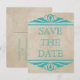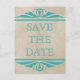 Stylish and chic Elegant Deco Save the Date Postcard featuring a pair of art deco swirl flourish borders in turquoise and a vintage textured look background in a soft beige. This save the date postcard has rustic charm while maintaining a lovely sophisticated flair. Absolutely perfect for an art deco 1920's vintage themed wedding. Easy to customize, simply add your wedding details in the text fields provided. Click "Customize It" to find more personalization options such as changing fonts or text colors.