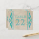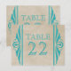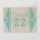 Stylish and chic Elegant Deco Wedding Table Number Postcard featuring a pair of art deco swirl flourish borders in turquoise and a vintage textured look background in a soft beige. This table card has rustic charm while maintaining a lovely sophisticated flair. Absolutely perfect for an art deco 1920's vintage themed wedding. Easy to customize, simply add the appropriate table number(s) in the text field provided. Click "Customize It" to find additional personalization options.