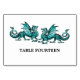 Perfect for a sophisticated fantasy tabletop game themed wedding is this nerdy and unique Elegant Dragons Wedding Table Number Card featuring a vibrantly colored pair of turquoise dragons. Easy to customize, simply add the appropriate table number(s) in the text field provided. Click "Customize It" to find additional personalization options.