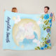 Teal Elephant Crescent Moon Personalized Name Fleece Blanket