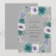 This design features a sophisticated palette of deep teal and soft lavender watercolor florals set against a muted slate grey backdrop. The moody winter aesthetic is highlighted by delicate anemones with striking dark centers and lush green foliage. The artistic arrangement creates a tranquil and elegant atmosphere perfect for a seasonal union.