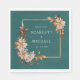 Teal Fall Leaves Napkins. Add a layer of elegance to your place settings with coordinating paper napkins from the Teal Terracotta Fall Leaves Floral Collection. Featuring delicate watercolor florals and foliage in warm terracotta, burnt orange, beige, and copper tones against a teal background, these napkins enhance your table décor while maintaining a practical and polished look. Personalize them to add charm and continuity to your reception setup.