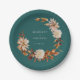 Teal Fall Paper Plates. Add charm to your dessert or dining experience with these fall-themed paper plates, adorned with watercolor leaves and florals in terracotta, burnt orange, beige, and copper tones against a deep teal background. Whether used for cake, snacks, or casual bites, these plates bring seasonal beauty and thoughtful design to your reception. Personalize them for a coordinated and festive touch.