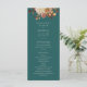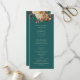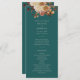 Teal Fall Program. Share your ceremony details with style and seasonal flair using this wedding program from the Teal Terracotta Fall Leaves Floral Collection. Designed with a rich teal background and layered with delicate watercolor artwork—burnt orange and terracotta leaves, cream and beige dahlias, and copper-colored roses—this program offers both elegance and information. It’s a lovely keepsake for guests and a perfect complement to your cohesive fall wedding theme. Personalize it now to complete your paper suite.
