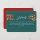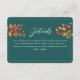 Elegant and practical, this teal and orange fall wedding details card is a must-have for couples planning an autumn celebration. Featuring rich watercolor foliage in fiery shades of red, orange, and gold, this card is perfect for conveying important information about your big day. Whether you're including directions, a wedding website, hotel recommendations, or RSVP instructions, this design keeps your guests beautifully informed. Fully customizable and easy to match with the rest of your fall stationery suite.
