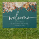 Make a striking first impression with this fall-inspired outdoor welcome sign, designed to greet guests with warmth and seasonal charm. The background is a rich teal canvas layered with hand-painted watercolor florals and foliage, including terracotta and burnt orange leaves, cream dahlias, and coppery roses that radiate rustic elegance. Perfect for outdoor venues or garden ceremonies, this sign sets the tone for a cohesive and thoughtfully styled wedding experience. Begin customizing your entrance and let your decor speak for itself.