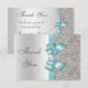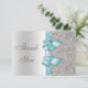 Teal Faux Bow Silver Diamonds Thank You Card