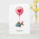 This card shows a teal fish with horizontal stripes and a friendly, wide smile, floating against a white background as if carried along by affection ❤️. A thin string rises from the fish to a glossy pink balloon, linking them like two companions staying close even when drifting upward 🥰. Centered on the balloon is a ruby-red heart, and around it sit small white polka dots that add a festive touch. The fish’s fins flare in orange and red, giving the scene a warm, romantic glow without needing anything else in the setting. All the artwork is placed in the middle of the front, leaving generous white space around it so your eyes go straight to the pair. Any greeting text is kept minimal and sits near the lower area in a soft gray tone that stays gentle against the white. A faint gray shadow beneath the fish suggests a light source above and gives the floating scene a bit of depth. The balloon’s pink shine and the red heart stand out most, with the string drawn as a delicate line leading straight upward.