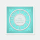 Napkin in teal for the Floral Around the Clock Shower Suite. A silver clock face is the focal point of the design. Floral silhouettes surround it, adding a soft, bridal motif. Choose from three different background colors: teal, pink, or purple. Spice up your themed bridal shower with matching, personalized napkins!