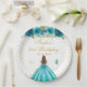 Teal Floral Brown Hair Princess Birthday Party Paper Plates
