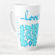 Brighten every morning with our beautiful "Love to Laugh" Latte Mug. It has a whimsical, floral edged font that is hand drawn and a blue teal color palette. The elegant, tapered silhouette makes it the perfect vessel for creamy lattes, frothy cappuccinos, or a comforting tall cup of tea.