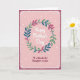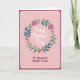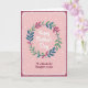 This Mother's Day card features a circular wreath of leafy sprigs in deep teal, verdant green, and rich crimson, arranged like a gentle hug around the center ❤️. Small berry-like dots in light blue and soft red are tucked between the leaves, adding little sparks of color that feel like quiet affection. In the middle, the words “Happy Mother’s Day” sit centered in white, flowing lettering that looks soft and caring. The background is blush pink with scattered tiny white dots, like light confetti drifting down 🌼. A deep maroon border frames the card, edged with a dashed white line that resembles neat stitching. Near the bottom, “To a Wonderful Daughter in Law” is placed in burgundy lettering, aligned under the wreath to keep the message close and intimate. The border also includes small curling accents at the corners, all set against the pink field with the white dot pattern.