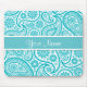 Teal Floral Paisley Monogram Pattern Mouse Pad