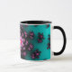 This colorful fractal coffee mug has bright and vibrant colors such as teal, black and pink. These mugs have several different colors to choose from for the inside and handle of the mug. Also, you can choose from the style and size of these mugs. These mugs are great for kitchen and office use.