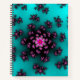 This colorful fractal notebook has bright and vibrant colors such as teal, black and pink. These notebooks are great for school, office and personal use. You can change the style, inside paper design and spiral color of this notebook.