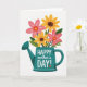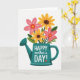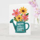Designed with a bright white background, the artwork centers on a deep teal watering can tipped slightly as if offering a bouquet like a small gesture of affection ❤️. A cluster of simplified flowers rises from the opening, mixing soft pink petals with orange centers and sunny yellow blooms with dark brown centers and tiny red accents. Fresh green leaves fill the gaps, giving the arrangement a lively, just-picked look that feels like a friendly thank-you. Across the side of the watering can, the words “HAPPY mother’s DAY!” appear in crisp white lettering, standing out clearly against the teal. A small red heart mark sits near the message, adding a tender, romantic touch without saying a word 🌼. The overall layout keeps everything focused on the can and flowers, with lots of open space that makes the colors feel extra bright. The spout curves gently to the right, and the handle arcs smoothly on the left, framing the bouquet at the center.