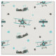 Teal Flying Retro Airplane Stars Pattern Fabric