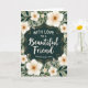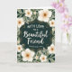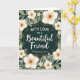 Designed with a deep teal, ornate central frame edged in fine gold detailing, the card draws your eye straight to the message area. Inside that frame, crisp white lettering sits centered, with a flowing emphasis line paired with a more traditional supporting line, both standing out clearly against the dark background. Around the frame, a thick border of greenery curls and overlaps in a way that feels like a gentle embrace, suggesting closeness and care ❤️. Large creamy white blossoms with softly shaded petals sit prominently in the border, each with a warm, earthy center that adds a tender, intimate touch. Smaller white florets and slender tendrils weave between deep green leaves, creating little moments that feel like quiet companionship 🌼. The background behind the foliage is a muted sage green, keeping the overall scene calm and softly romantic. Subtle gold accents appear along the frame’s curves and in tiny highlights near the leaves, while the creamy blooms cluster most densely near the corners of the design.