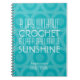 If you are shopping for gifts for someone in your life who loves to crochet this crochet journal will make a thoughtful present for them. The text reads A Day Without Crochet is Like a Day Without Sunshine against a teal background with concentric geometric circles. There is room to personalize with her name. Original Design Clare Swindlehurst (c)