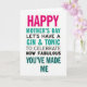 This card features a tall, text-only layout on a bright white background, arranged in stacked lines that read like a quick, affectionate note ❤️. The top word “HAPPY” sits near the upper center in magenta, catching your eye first with a lively punch of color. Just below, “MOTHER’S DAY” appears in teal, giving the message a fresh, upbeat balance against the white space. Short connecting phrases in black are placed between the colored lines, creating a back-and-forth rhythm that feels like a warm conversation between close family or friends. Midway down, “GIN & TONIC” is set in teal, adding a grown-up wink that suggests an easy bond and shared laughs 🌼. The remaining lines continue downward with alternating teal and black phrases, using heavier and lighter letter weight to keep the flow moving. The final line sits near the bottom in black, with crisp, sharp lettering and even spacing from edge to edge.