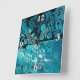 10.75” x 10.75” acrylic wall clock with an image of fabulous swirling teal glass blocks.