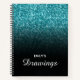 Teal Glitter Black Ombre Personalized Drawing Notebook