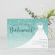 Teal Glitter Dress Will You Be My Bridesmaid Invitation. This elegant design features faux glitter accented with a white wedding dress on a hanger. Personalize this custom design with your own details.
