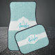 Add a touch of glamour to your vehicle with this Teal Glitter Monogram Car Floor Mats, a dazzling choice for glitter theme home accents and monogram home decor. These mats feature a radiant glitter pattern and sparkle background, accentuated by a chic fancy banner design. Personalized with a name and monogram in a blend of elegant script and modern typography, they bring a sophisticated yet bold style to your car’s interior. With a simple layout for timeless appeal, these durable mats combine practicality with sparkling elegance, perfect for a luxurious, personalized driving experience.