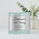 Teal Glitter Pale Silver Gradient 40th Birthday Invitation