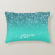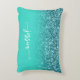 Teal Glitter Turquoise Ombre Modern Script Accent Pillow