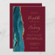 Teal Gold Agate Burgundy Red QR Code Wedding Invitation