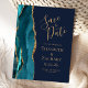 Teal Gold Agate Navy Blue Wedding Save the Date Announcement Postcard