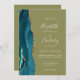 Teal Gold Agate Olive Green QR Code Wedding Invitation