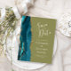 Teal Gold Agate Olive Green Wedding Save the Date Announcement Postcard