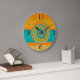 A simplistic design in teal, gold and orange which includes a swirl pattern center.Large Numerals complete this interesting kitchen clock design. Perfect for home or any special occasion .