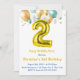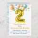 Teal Gold Balloons 2nd Birthday Invitations