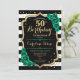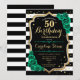 Teal Gold Black White Stripes Roses 50th Birthday Invitation