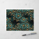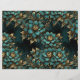 An elegant floral pattern featuring teal and gold flowers on a dark grunge background.