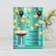 Teal Blue Gold Fabulous Espresso Martini Cocktail Coffee Lights Silver Black Balloons Party Birthday Celebration. Womens ladies. Elegant Classy All Occasion Invitations.