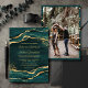 Teal Gold Fluid Ink Photo Wedding Invitation