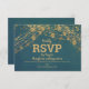 Teal Gold Glitter String LIghts Wedding RSVP Card