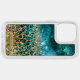 Teal Gold Leopard Print Galaxy Personalized Name iPhone 15 Pro Max Smart Phone Cases features a teal and gold leopard print faux glitter pattern with your personalized name in elegant script typography. Perfect as a gift for Christmas, birthday, Mother's Day, best friends, sister and more. Designed by ©2024 Evco Studio www.zazzle.com/store/evcostudio